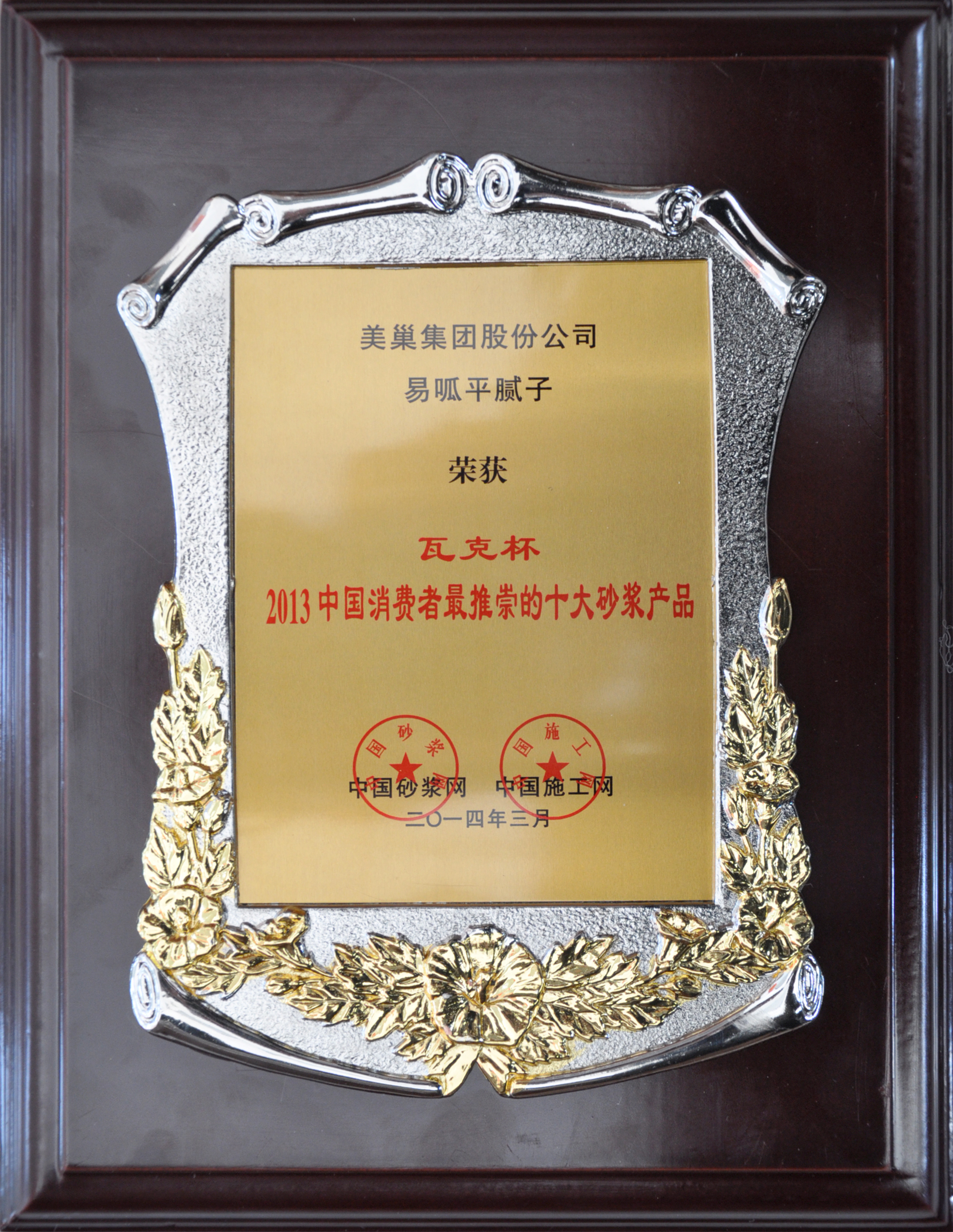 2013年度中國消費(fèi)者最推崇的十大砂漿產(chǎn)品