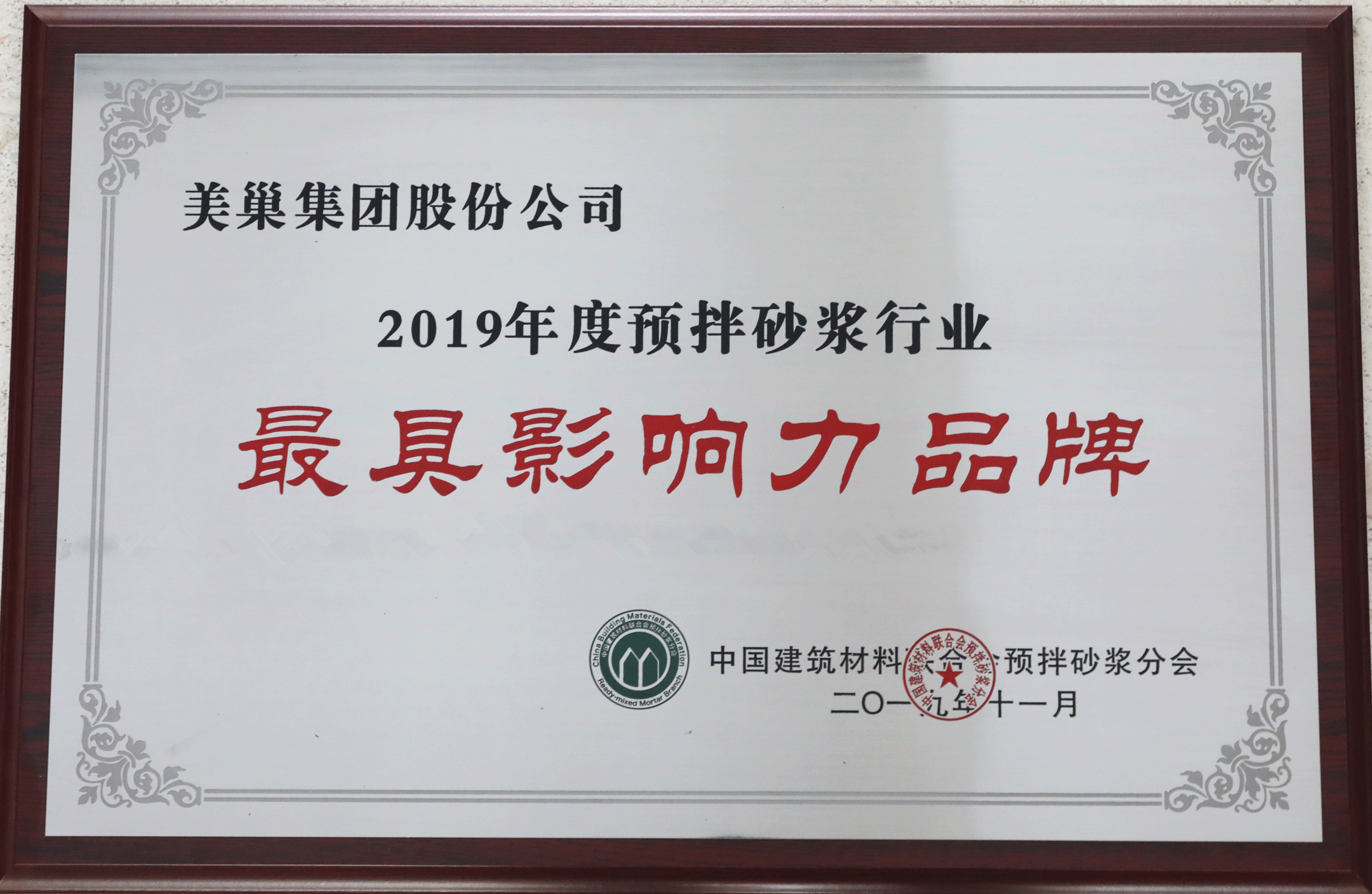 2019年度預拌砂漿行業(yè)最具影響力品牌