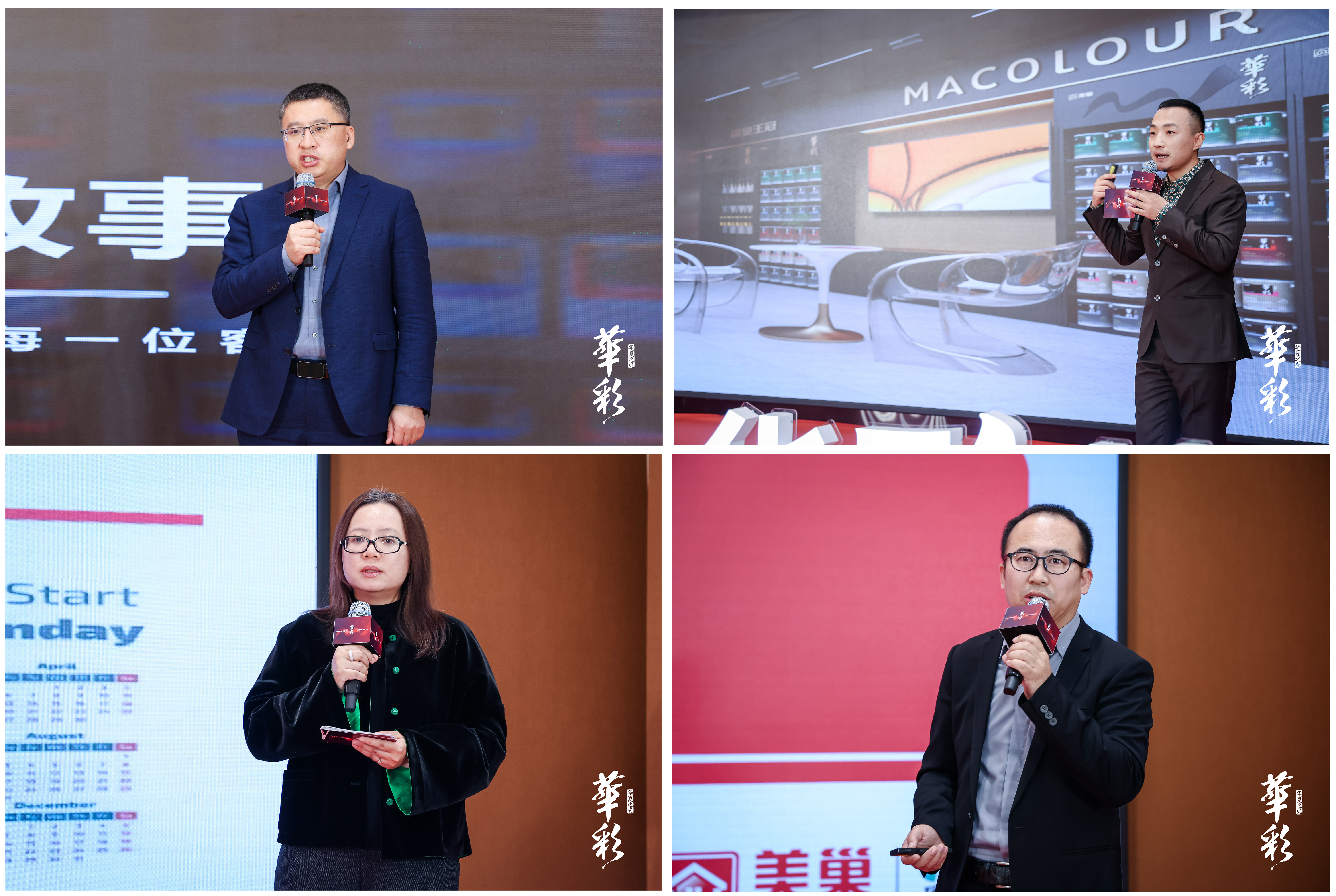 會議后半程,來自運營管理部渠道運營經(jīng)理穆志強(qiáng)、品牌部內(nèi)容運營經(jīng)理尹得旺、市場部渠道推廣經(jīng)理潘萍、市場部市場經(jīng)理張桂青四位專業(yè)經(jīng)理圍繞渠道運營、渠道精耕、品牌傳播與品牌賦能等方向?qū)Α度A彩漆導(dǎo)入期市場政策》展開解讀。