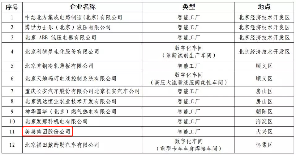 2018年北京市智能制造標(biāo)桿企業(yè)名單