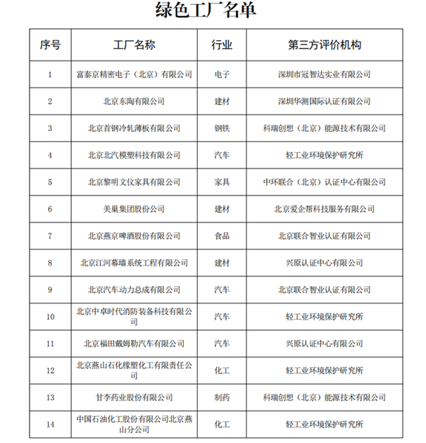 “北京市綠色制造名單”評選流程嚴格,需要先經(jīng)過申報單位自評價和第三方評價機構(gòu)評價,之后市經(jīng)信委再組織專家進行評估論證、公示,才最終確定。