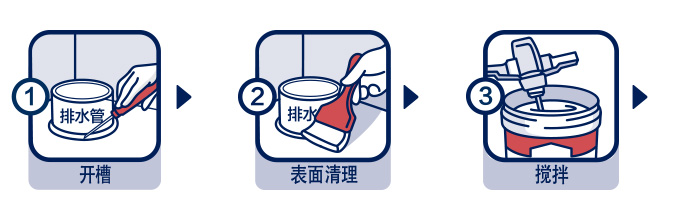 | 基層處理: | 基層應(yīng)堅(jiān)實(shí)、干凈、無(wú)油污、無(wú)灰渣,管道根部應(yīng)無(wú)污物、灰渣或銹跡。堵漏施工前應(yīng)先將漏水點(diǎn)或漏水縫鑿成寬度與深度均為1~2厘米左右的凹槽或燕尾槽,并清理干凈槽內(nèi)松散的碎渣。 |