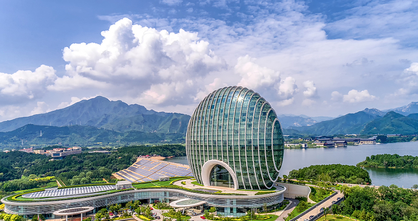 包括兩大部分:一是雁棲島(雁棲半島)國(guó)際會(huì)議中心及配套設(shè)施(夏園、雁棲島酒店和別墅群),二是岸邊的北京雁棲湖國(guó)際會(huì)展中心及相關(guān)的北京日出東方凱賓斯基酒店。會(huì)議中心主建筑是“漢唐飛揚(yáng)”,會(huì)展中心主建筑是“天圓地方”,兩大板塊相輔相成。