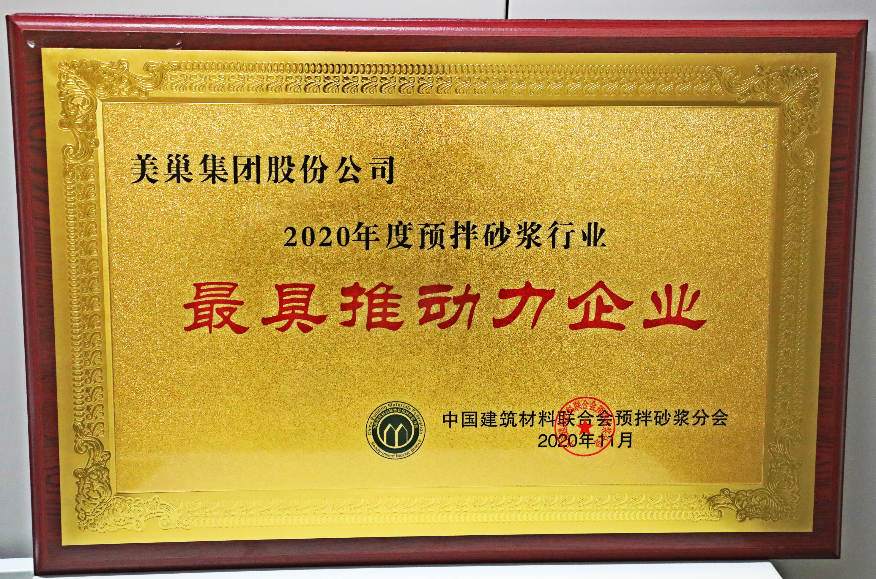 2020年度預(yù)拌砂漿行業(yè)最具推動力企業(yè)