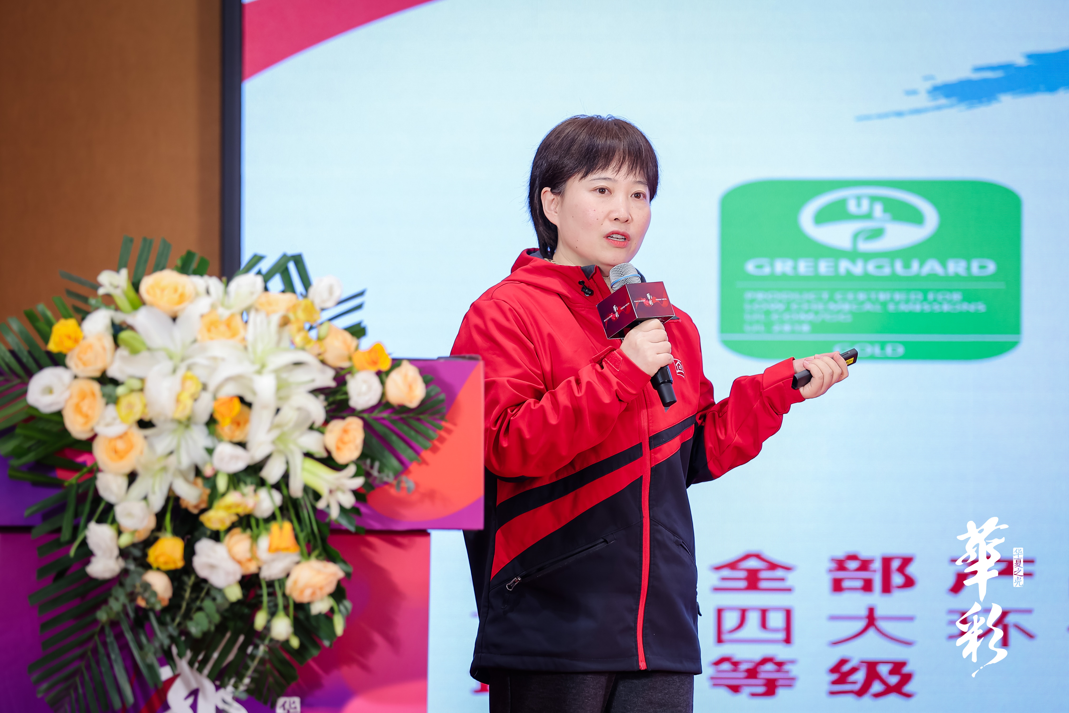 品牌部負(fù)責(zé)人程娟則從品牌建設(shè)角度出發(fā),分享了《華彩愿景》。她表示,華彩漆是美巢“環(huán)保家居守護(hù)者”品牌使命的延伸,承載著美巢追求卓越品質(zhì)、弘揚(yáng)民族品牌的初心。“讓世界看到中國的色彩,讓中國的品牌在國際舞臺上發(fā)光。”