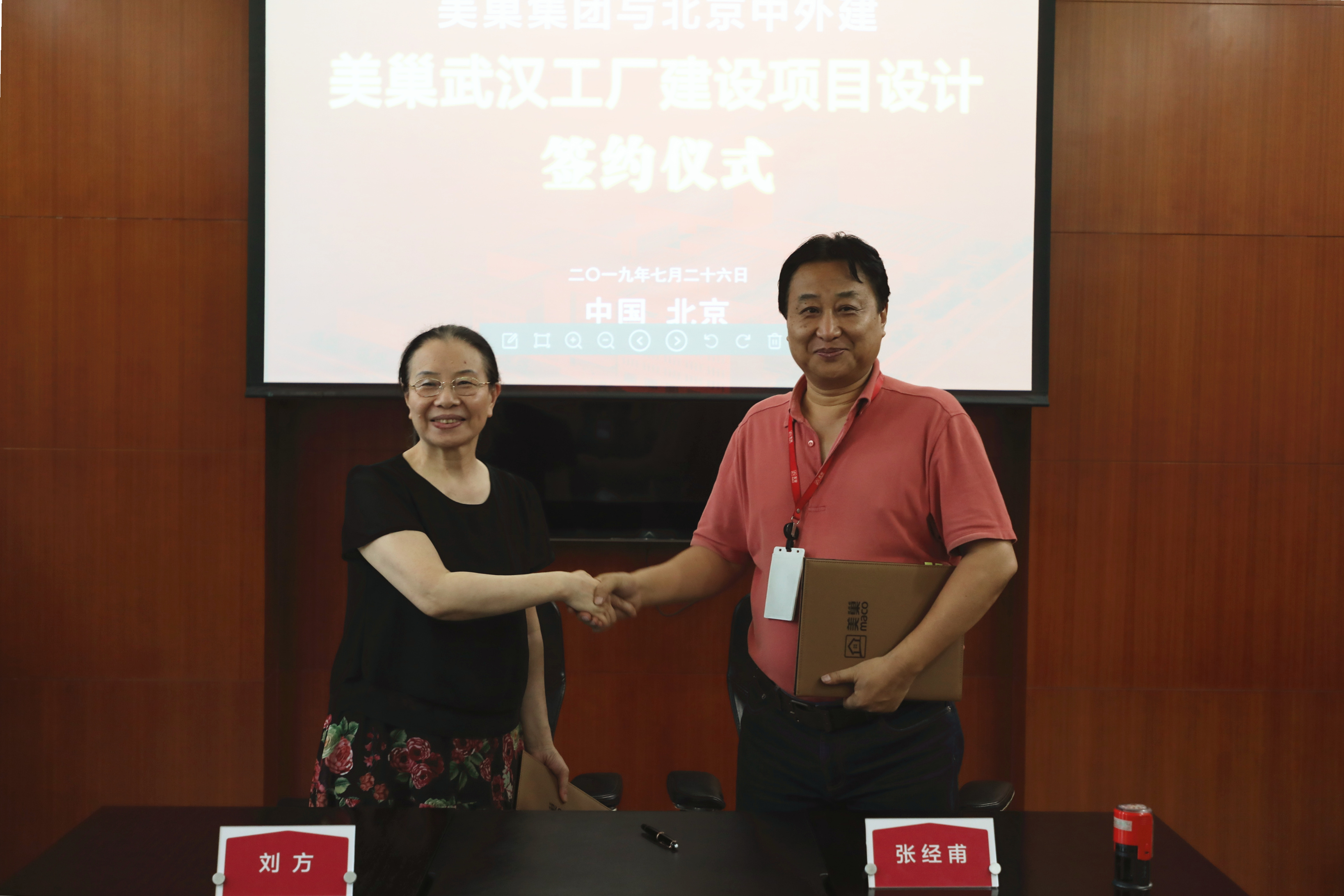 2019年7月26日,美巢集團(tuán)武漢股份公司與北京中外建建筑設(shè)計(jì)有限公司關(guān)于美巢武漢工廠建設(shè)項(xiàng)目設(shè)計(jì)簽約儀式在美巢集團(tuán)總部舉行。北京中外建董事長(zhǎng)劉方、總經(jīng)理?xiàng)钸M(jìn)、第五分公司副總經(jīng)理呂方建、第五分公司工程部經(jīng)理趙大偉及美巢集團(tuán)董事長(zhǎng)張經(jīng)甫、發(fā)展建設(shè)部總監(jiān)孫寶蘭等人出席此次簽約儀式。