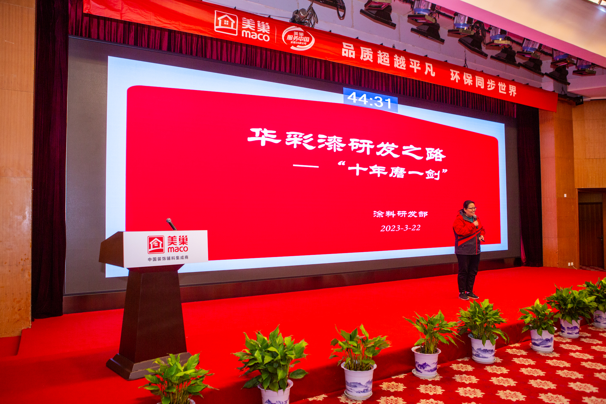 除此之外,此次美巢市場(chǎng)大會(huì)還組織了各大區(qū)的運(yùn)營(yíng)經(jīng)理訪談,傳遞運(yùn)營(yíng)工作的內(nèi)核,向參會(huì)人員詳細(xì)介紹了運(yùn)營(yíng)管理如何助力大區(qū)發(fā)展;來(lái)自大區(qū)的銷(xiāo)售及運(yùn)營(yíng)人員就“渠道精耕之如何做好開(kāi)發(fā)期的區(qū)縣市場(chǎng)”、“精益管理(PDCA)在日常工作中的應(yīng)用”等話題進(jìn)行專(zhuān)題匯報(bào);研發(fā)部總監(jiān)劉鳳仙就華彩漆展開(kāi)專(zhuān)題介紹,首次向全體人員解開(kāi)華彩漆的面紗;各產(chǎn)品版塊主要研發(fā)人員還就各自產(chǎn)品、環(huán)保方面展開(kāi)相應(yīng)介紹;發(fā)展建設(shè)部總監(jiān)孫寶蘭帶領(lǐng)全體市場(chǎng)銷(xiāo)售人員參觀美巢智能化生產(chǎn)流水線等多個(gè)豐富的環(huán)節(jié)。