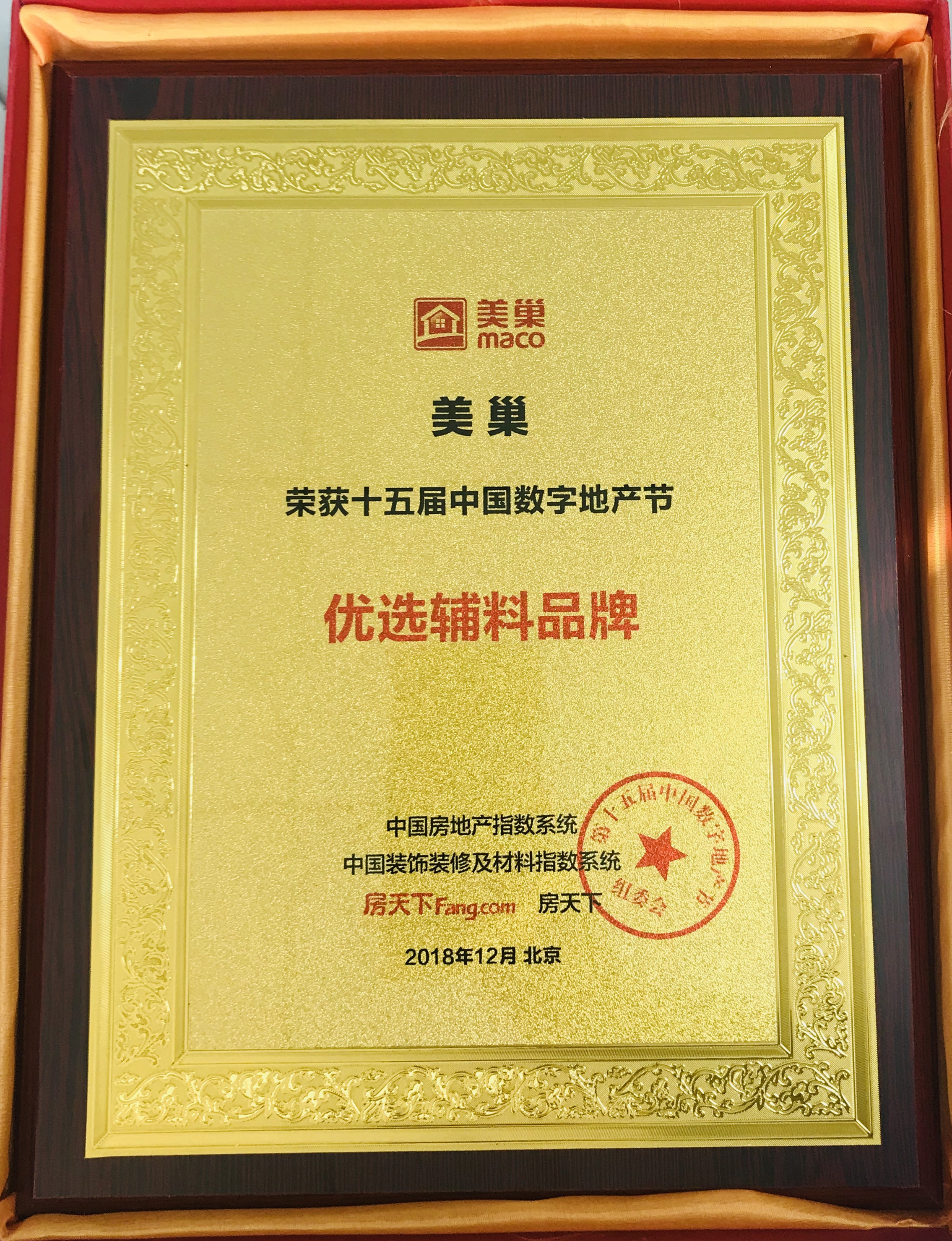 美巢獲中國(guó)數(shù)字地產(chǎn)節(jié)“優(yōu)選輔料品牌”獎(jiǎng)