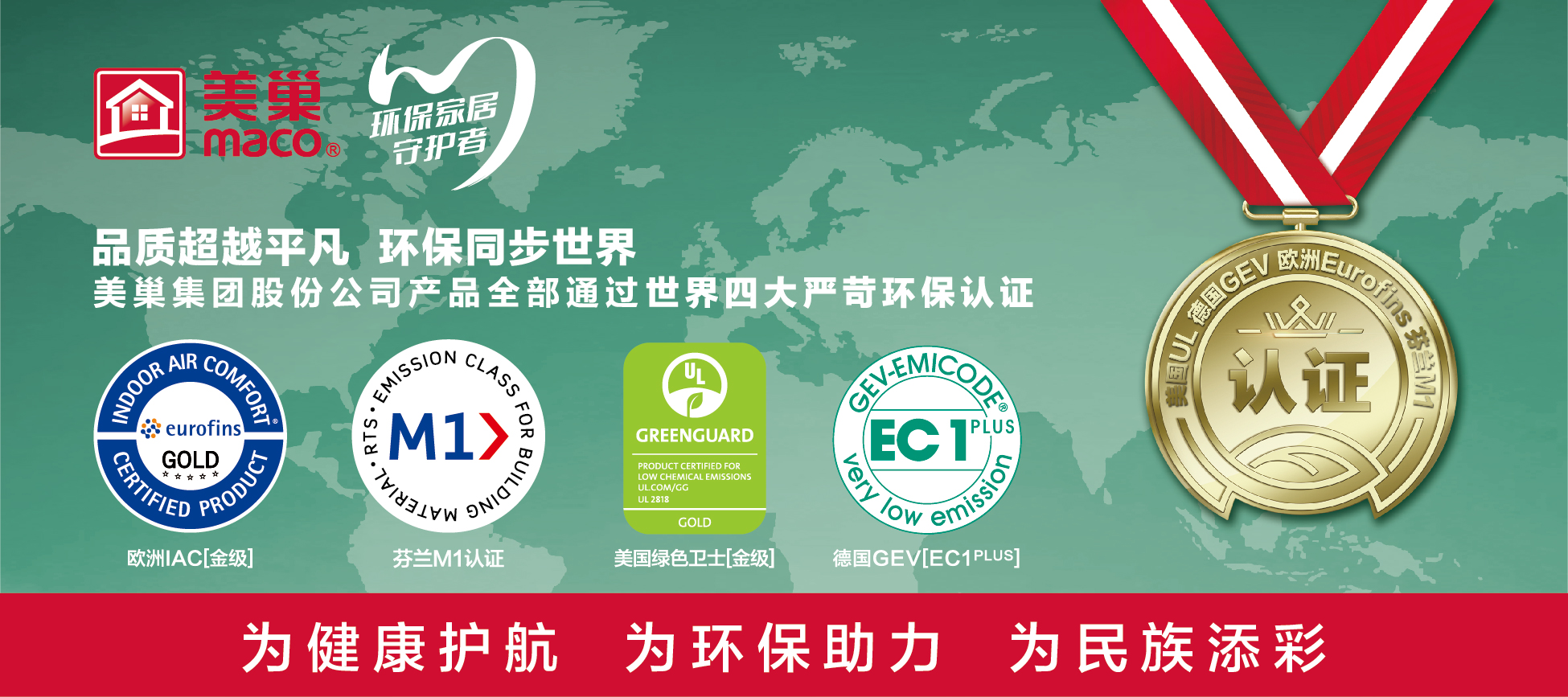 美巢自1996年成立以來(lái)一路見(jiàn)證了家居建材行業(yè)的發(fā)展,始終專(zhuān)業(yè)、專(zhuān)注于室內(nèi)裝飾輔料的研究、開(kāi)發(fā)和制造,旗下易呱平、墻尼、墻錮、占瓷寶、坊水固、華彩六大核心產(chǎn)品綻放神州。美巢董事長(zhǎng)張經(jīng)甫在多個(gè)場(chǎng)合表示:“室內(nèi)裝飾輔料與生命零距離,美巢致力于成為室內(nèi)裝飾輔料最大價(jià)值提供者。”為了這個(gè)承諾,定位于“環(huán)保家居守護(hù)者”的美巢,堅(jiān)持品質(zhì)和環(huán)保與世界水平對(duì)標(biāo),秉承著“品質(zhì)超越平凡、環(huán)保同步世界”的品牌核心價(jià)值,產(chǎn)品全部通過(guò)美國(guó)UL綠色衛(wèi)士金級(jí)、歐洲EurofinsIAC金級(jí)、德國(guó)GEV EC1PLUS以及芬蘭M1級(jí)這世界四大環(huán)保認(rèn)證。