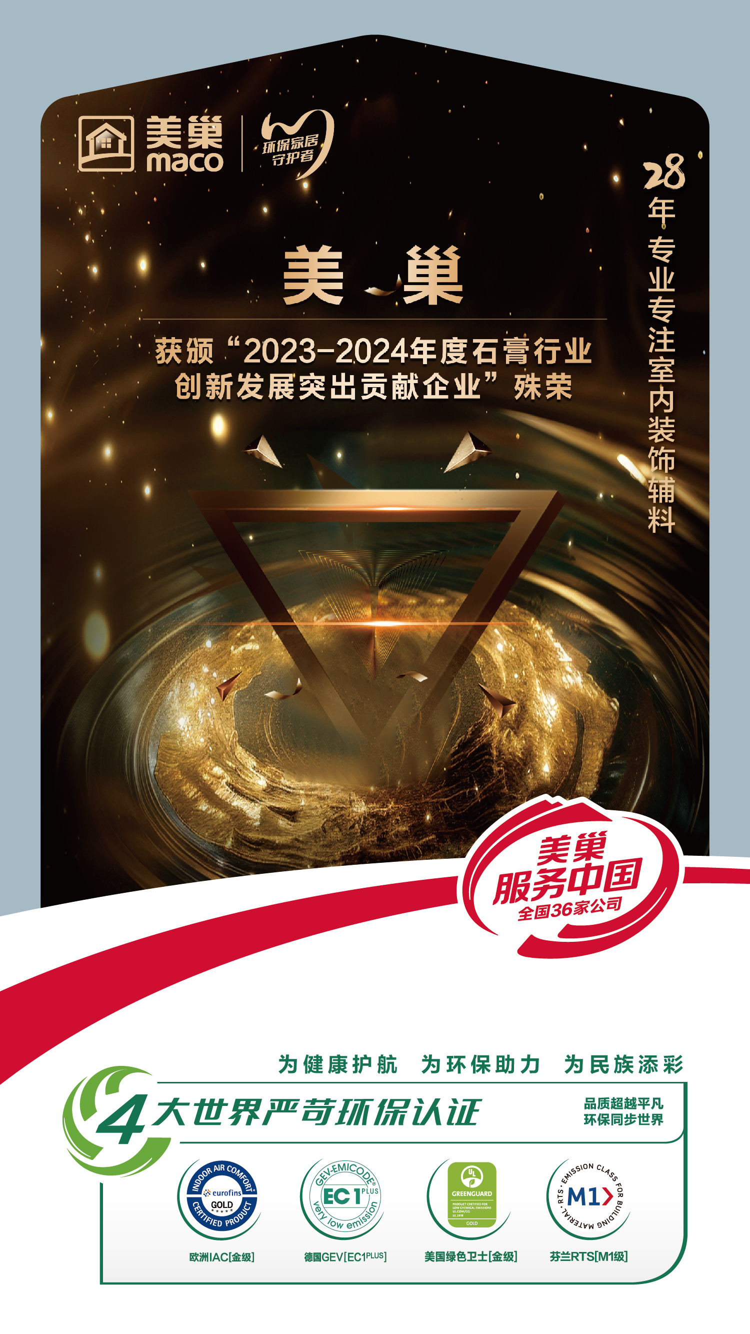 大會期間,對2023-2024年度為行業(yè)發(fā)展做出貢獻(xiàn)的優(yōu)秀集體和優(yōu)秀個(gè)人予以了表彰,憑借著對行業(yè)的帶動作用以及品牌影響力等因素,美巢集團(tuán)榮獲“2023-2024年度石膏行業(yè)創(chuàng)新發(fā)展突出貢獻(xiàn)企業(yè)”、董事長兼總裁張經(jīng)甫榮獲“2023-2024年度石膏行業(yè)領(lǐng)軍人物”等,共三項(xiàng)大獎。