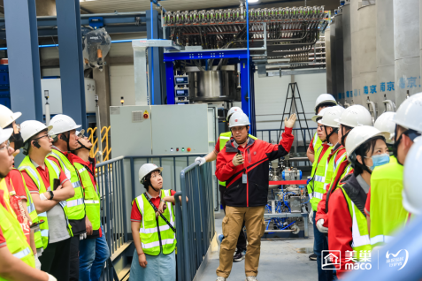 自動(dòng)化部機(jī)械管理經(jīng)理王飛通過“景”在華彩、“精”在華彩、“進(jìn)”在華彩、“僅”在華彩四個(gè)篇章,帶領(lǐng)參會(huì)人員領(lǐng)略了過美巢的“工業(yè)之美”后,無不贊嘆設(shè)備的先進(jìn)性、設(shè)計(jì)規(guī)劃的復(fù)雜性,盡管已經(jīng)有了心理預(yù)期,但在踏入廠區(qū)的那一刻,依然無法抑制住內(nèi)心的激動(dòng),再一次被這一作品深深地震撼。