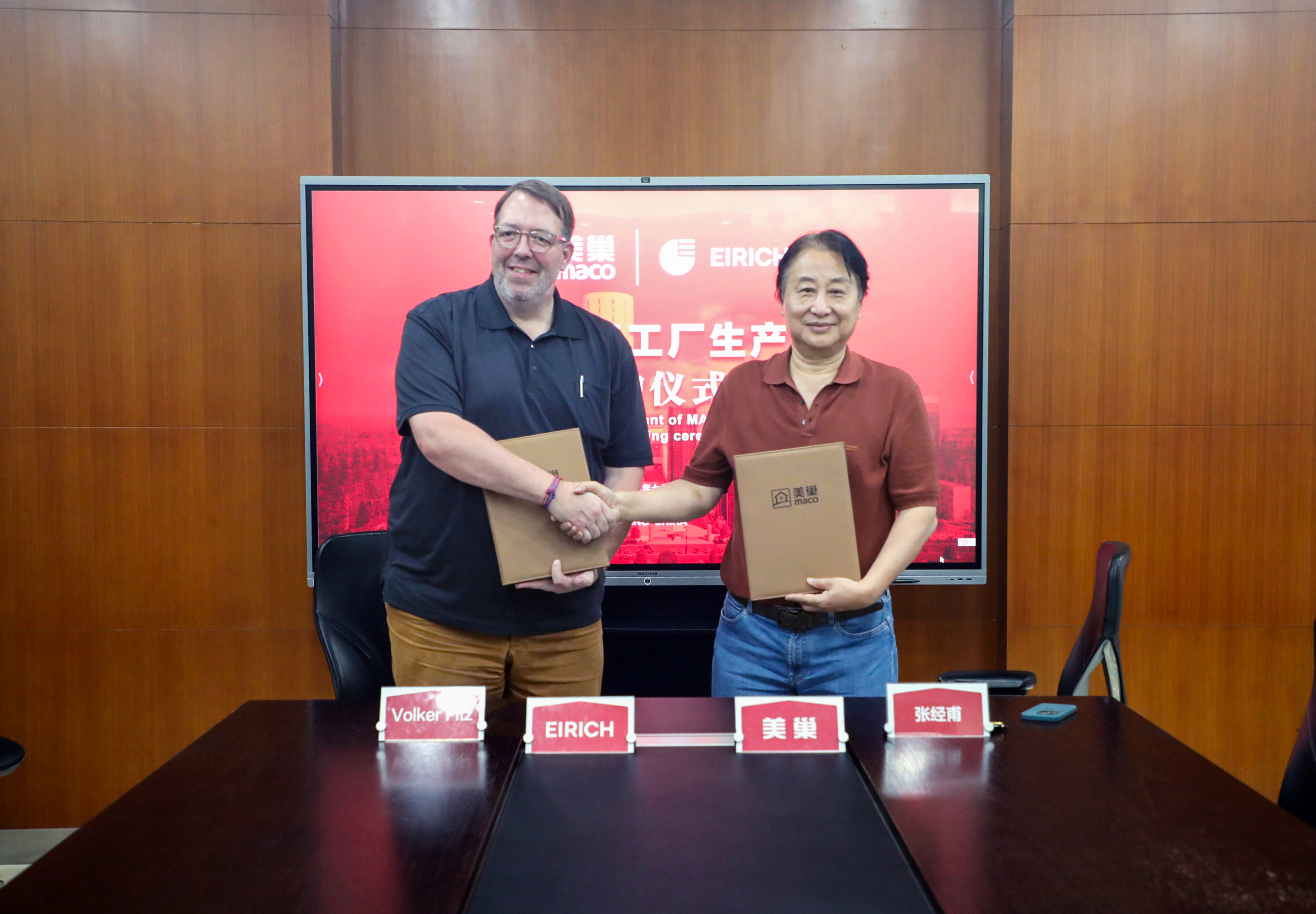 近日,一場跨越亞歐大陸的工業(yè)“聯(lián)姻”在北京上演,美巢集團(tuán)股份公司(以下簡稱:美巢)與擁有162年歷史的德國工業(yè)巨擘愛立許集團(tuán)(EIRICH)(以下簡稱:愛立許)合作簽約儀式在美巢集團(tuán)北京總部舉行,這是繼美巢集團(tuán)北京智能工廠收獲“世界砂漿之巔”美譽(yù)之后,雙方在智能制造領(lǐng)域的再一次強(qiáng)強(qiáng)聯(lián)合。美巢集團(tuán)董事長兼總裁張經(jīng)甫、愛立許全球銷售總監(jiān)Volker Fitz、愛立許中國區(qū)總裁陳繼華及雙方高層共同出席并見證了本次簽約儀式。