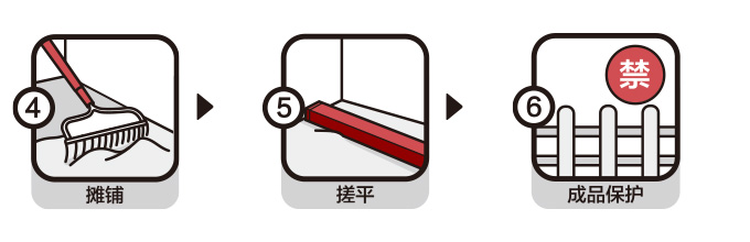 | 施工事項(xiàng): | 將攪拌好的砂漿攤鋪在地面,用大杠刮平壓實(shí),正常養(yǎng)護(hù)24小時(shí)后即可上人及后續(xù)施工。如果邊找平邊鋪磚,每次攪拌量應(yīng)根據(jù)鋪貼地磚的速度確定,粘貼地磚需用占瓷寶ZCB200?;卮u膠粘劑。 |