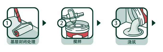 | 施工事項: | 施工面積較大時,應(yīng)設(shè)置分隔縫。澆筑厚度不得低于5mm,澆筑后用鋸齒抹刀或刮板等輔助攤平,并用消泡滾筒進(jìn)行輔助消泡。攪拌好的砂漿須在30分鐘內(nèi)用完。施工24小時后,須進(jìn)行打磨拋光及罩面處理。 |