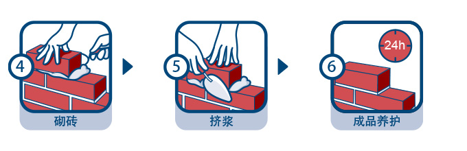 | 施工事項(xiàng): | 砌筑過程中應(yīng)充分?jǐn)D漿,及時(shí)清理磚縫擠出的多余砂漿。需要校直時(shí),必須在砂漿初凝前完成。攪拌好的砂漿須在2小時(shí)內(nèi)用完。 |